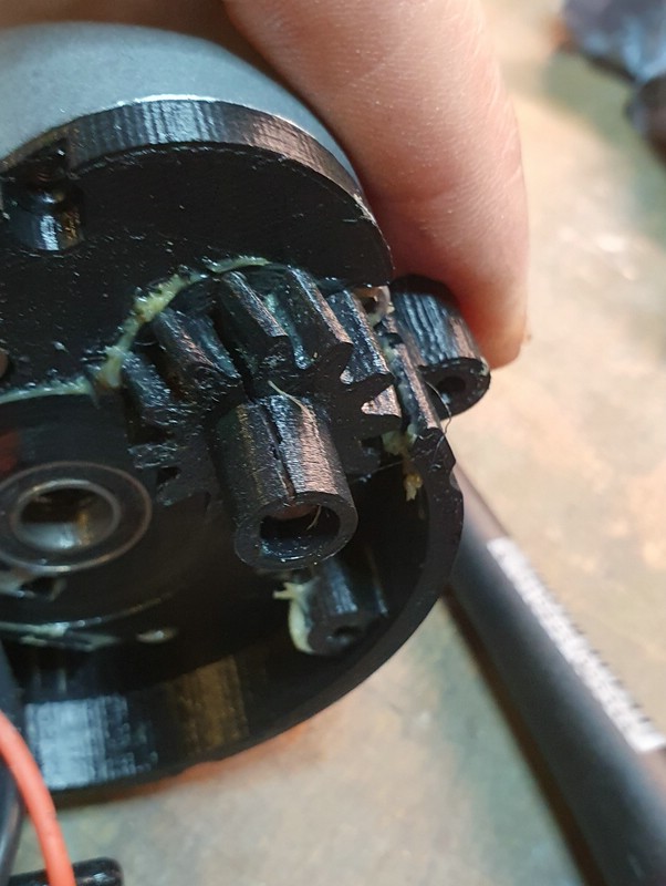 Mitte April kam dann der Postbote und es konnte mit dem Bau losgehen. Als erstes hatte mich der Kolbentank interessiert. Wie wurde das bei Maximus gelöst? Verbaut ist eine große 500ml Spritze, welche mit schwarzer Klebefolie umwickelt ist. Der Enddeckel, Zahnräder, Endschalterbefestigung… alles ist in PETG gedruckt. Das Zahnrad auf dem Getriebemotor läuft zudem in einem Loch am Tankenddeckel und da dachte ich mir, ob das gut geht. Das PETG Zahnrad im PETG Deckel. Nun gut, Fett war dran, lassen wir es mal drauf ankommen.